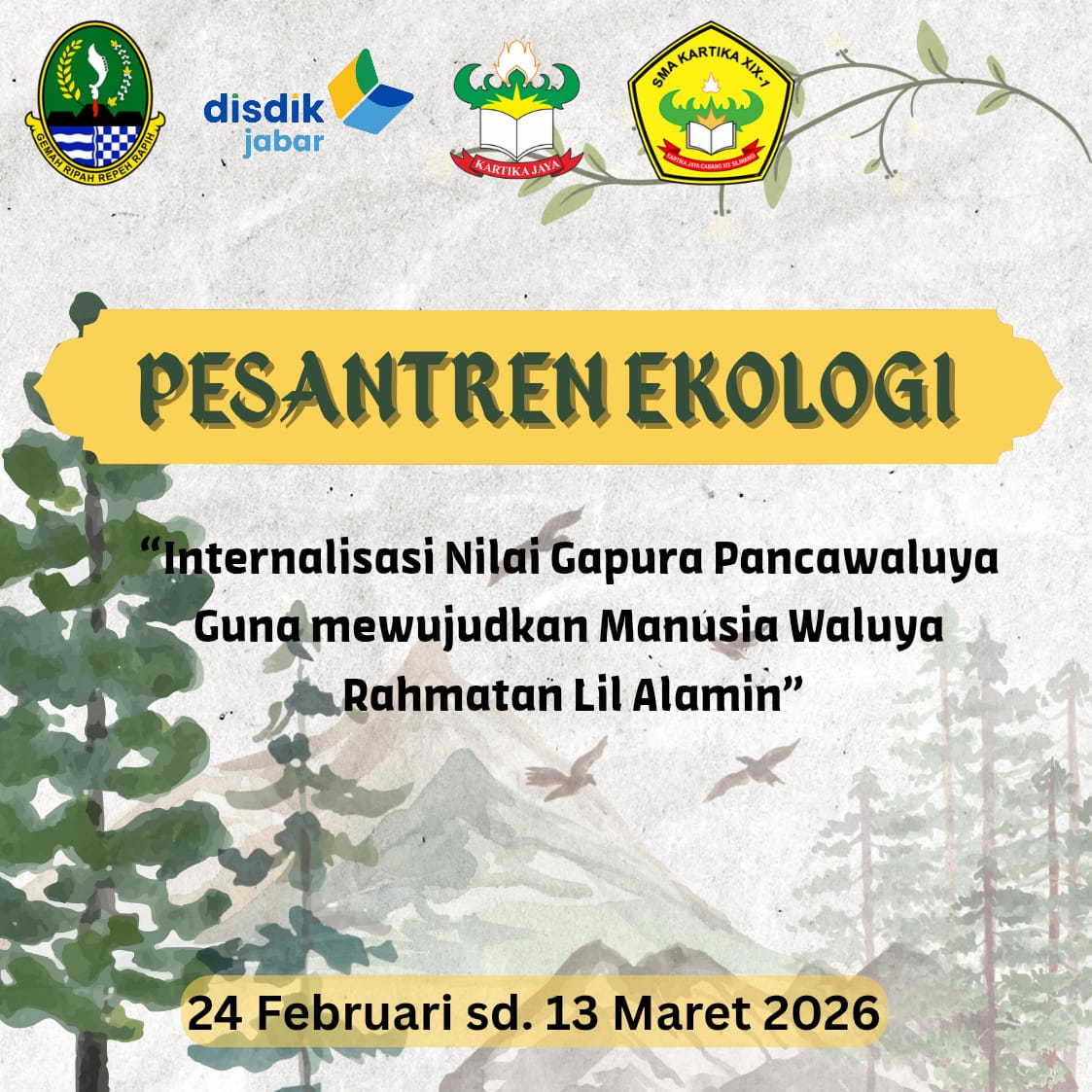 11:20:13 2026-02-27Pesantren Ekologi adalah serangkaian kegiatan Pesantren Ramadan 1447H/2026M yang merupakan program Dinas Pendidikan Jawa Barat yang dilaksanakan pada bulan Ramadhan sebagai upaya menginternalisasikan..